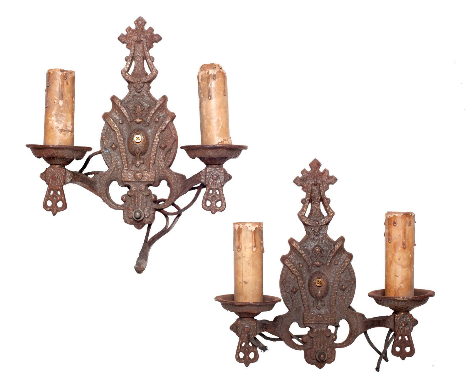 Two Original Ornamental Cast Brass C 1930 S Interior Residential Double Arm Spanish Revival Style Wall Sconces from www.urbanremainschicago.com Up for auction a pair of vintage electric gothic/medieval wall. Lamps expo is your source for discounted home lighting fixtures, fans, and decor. Hand forged iron three light wall sconce. Add these rustic iron candle wall sconces to any spanish or old world style space. They are in great working condition. See more ideas about wall sconces, sconces, wall lights. Iron size 20 cm/ 7.87 in lighting area: The constellation sconce is a traditional spanish wall sconce, that is sure to grab your attention.